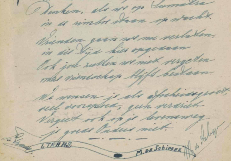 In 1947 keerde het gezin Arnold tijdelijk terug naar Nederland. Mevrouw Arnold zocht de moeders van de bevriende Zeeuwse militairen op om hen gerust te stellen over hun zoons. De band bleef hecht: in 1948 logeerden Marianne en Willy bij de moeder van Rinus de Schipper in Zeeland. Toen Zeeland in 1953 werd getroffen door de Watersnoodramp, stuurde mevrouw Arnold bemoedigende brieven vanuit Indië. In 1958 keerde de familie definitief terug naar Nederland, met het geliefde theeservies in de bagage. Jaren later schonk dochter Schaap-Arnold het aan het Bevrijdingsmuseum Zeeland. Met het poëziealbum van Willy vormen deze voorwerpen tastbare herinneringen aan vriendschap in turbulente tijden.