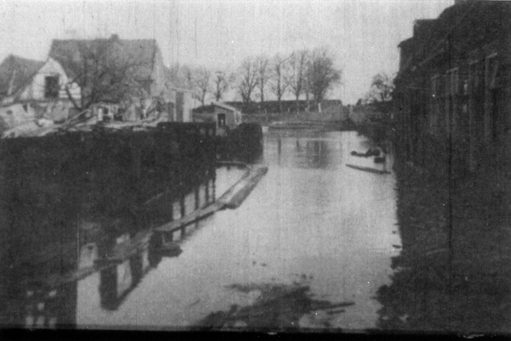 In de landbouwhaven was ook een uitwateringsluis. De Duitsers maakten die sluis onklaar, zodat bij hoogwater het water van de Schelde de polder binnen liep. Dit zorgde ervoor dat het gebied waar je nu staat, vanaf de dijk tot aan de spoorlijn en richting Kwadendamme werd geïnundeerd en dus onder water kwam te staan. Veel landbouwproducten, die nog wachten op hun oogstmoment op het land stonden, gingen verloren.